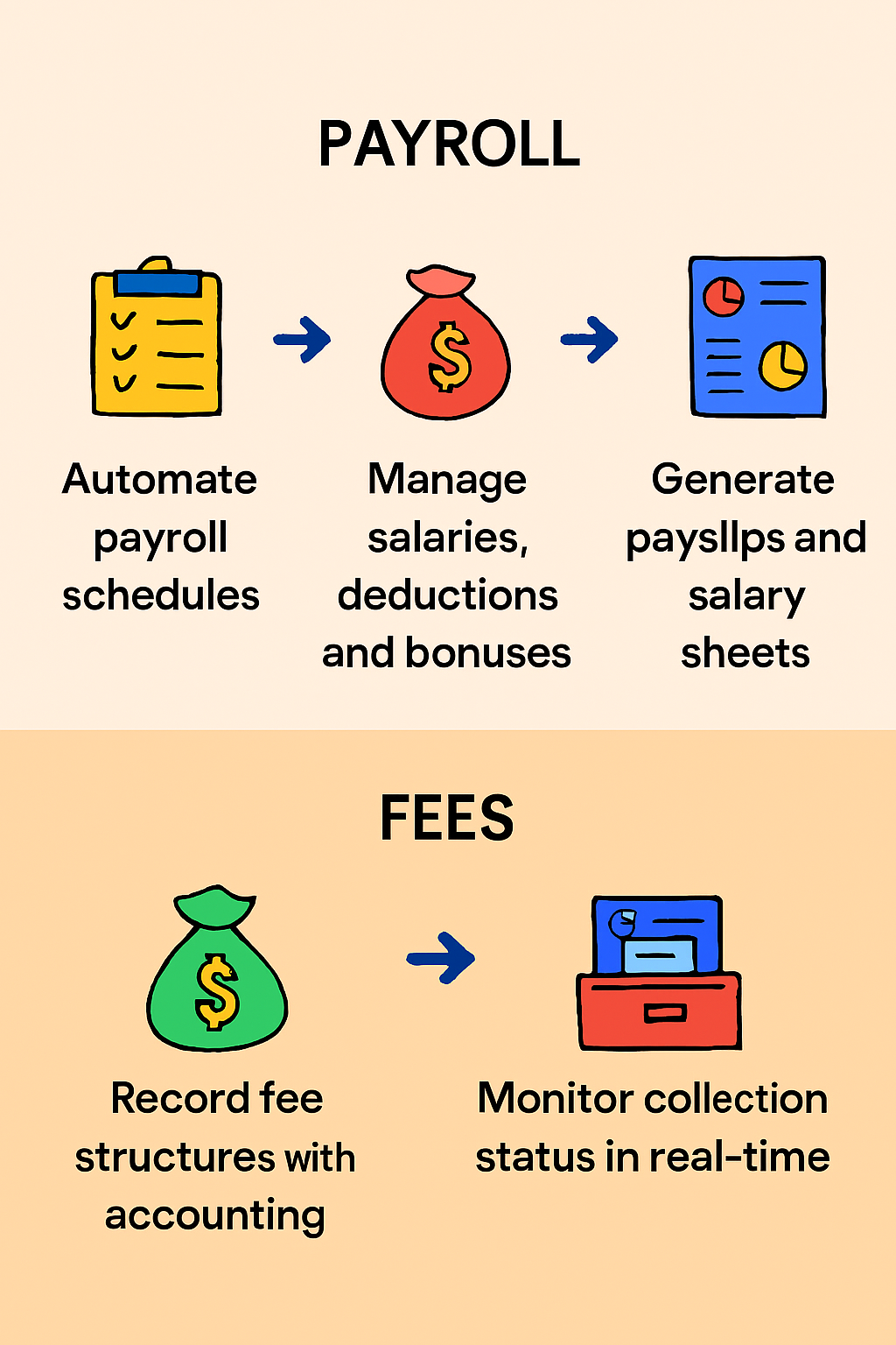 Manage student fee collection and tracking with automated tools.